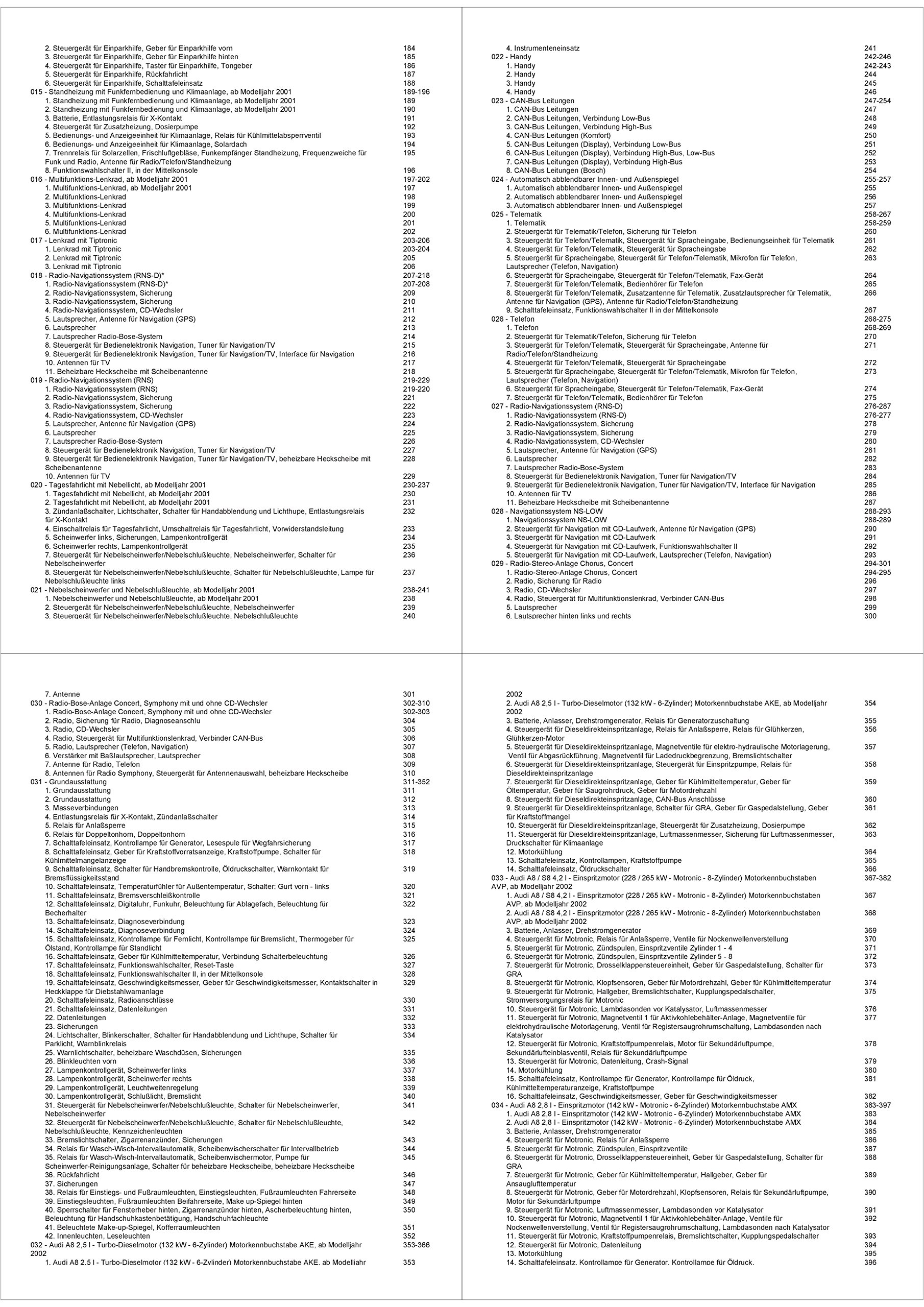 Audi A8 Typ 4d 01 02 Stromlaufplan Schaltplan Verkabelung