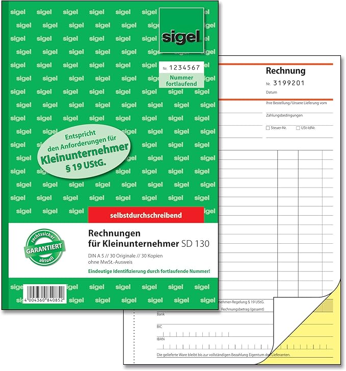Sigel Sd130 Rechnungen Fur Kleinunternehmer A5 2x30 Blatt